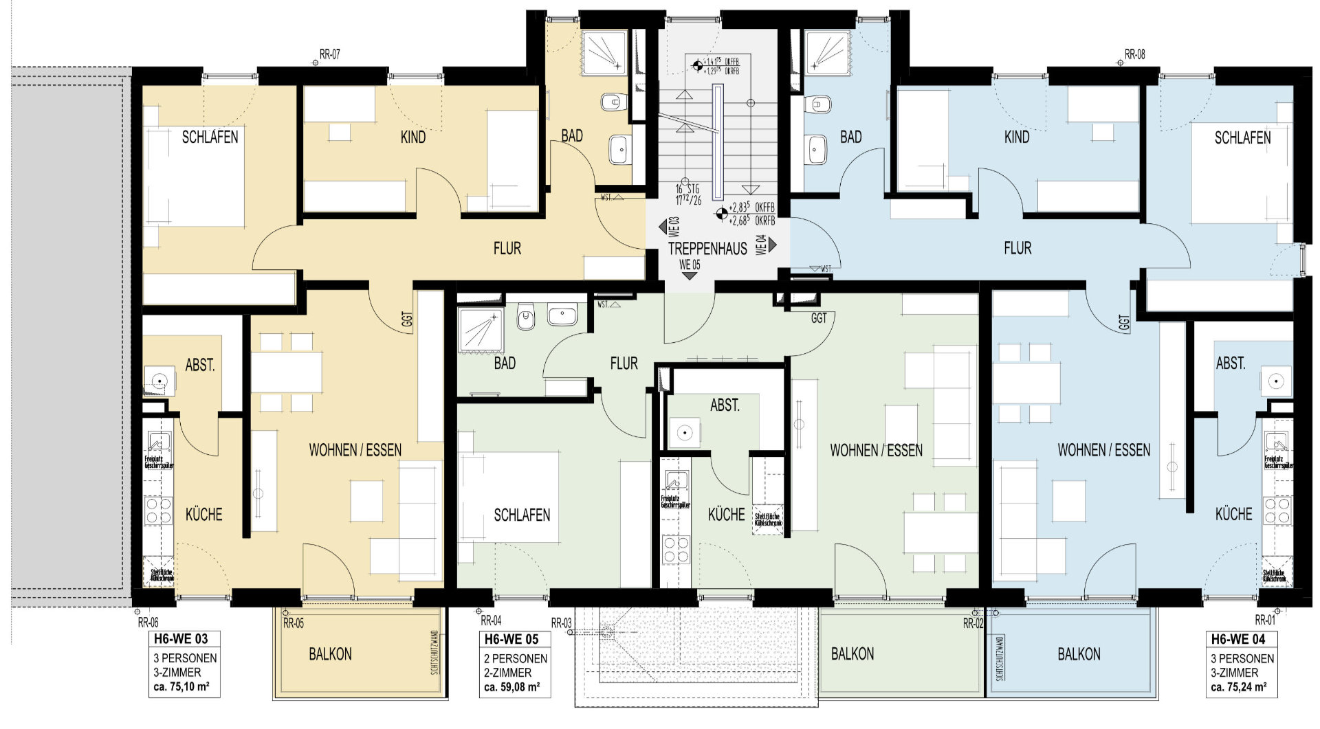 Bei den Wohnungen handelt es sich um 2 bis 4-Zimmerwohnungen mit Wohnflächen von ca. 50 m² bis ca. 90 m².